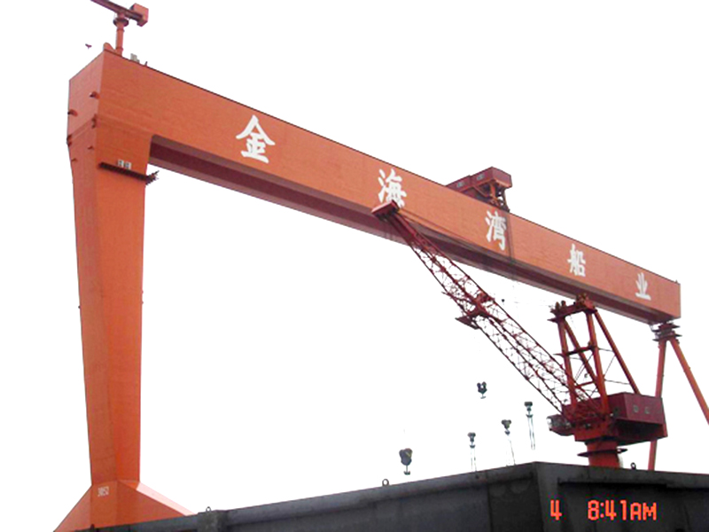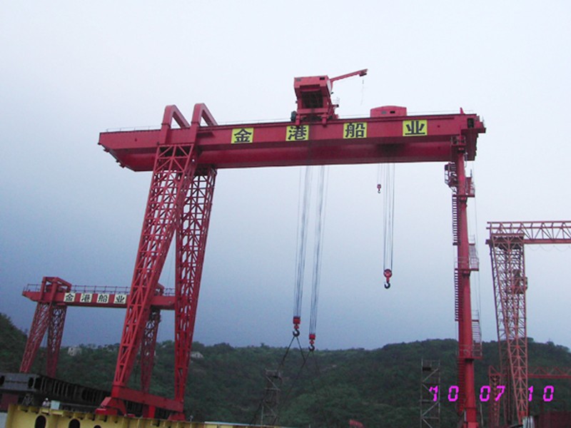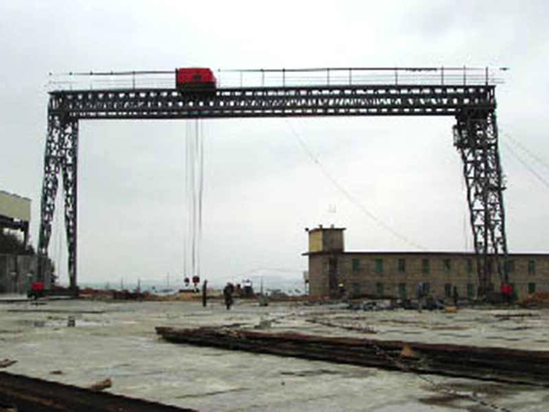 造船門式起重機(jī)適用于造船廠制作場所(船塢、船臺(tái))進(jìn)行造船作業(yè),具有單吊、雙點(diǎn)抬吊、三點(diǎn)抬吊、空中翻轉(zhuǎn)吊件和輕載(≤50%滿載)快速升降、低風(fēng)速(≤8m/s)快速運(yùn)行等多種作業(yè)功能,在起重機(jī)整體吊裝